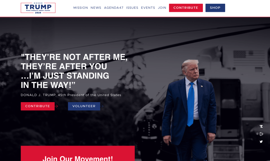 If you’re reading this I doubt you’ve ever clicked on Trump’s campaign website. This is what you’d see if you did on the top of the page: