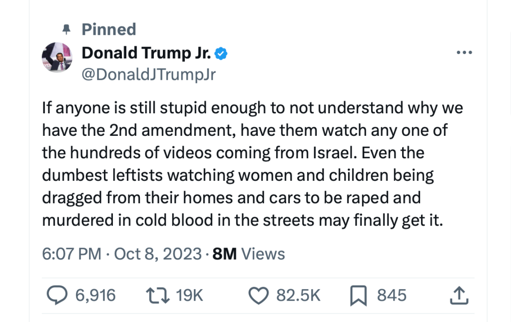 Donald Trump Jr. still posts on X. This is what he has pinned to his page:
