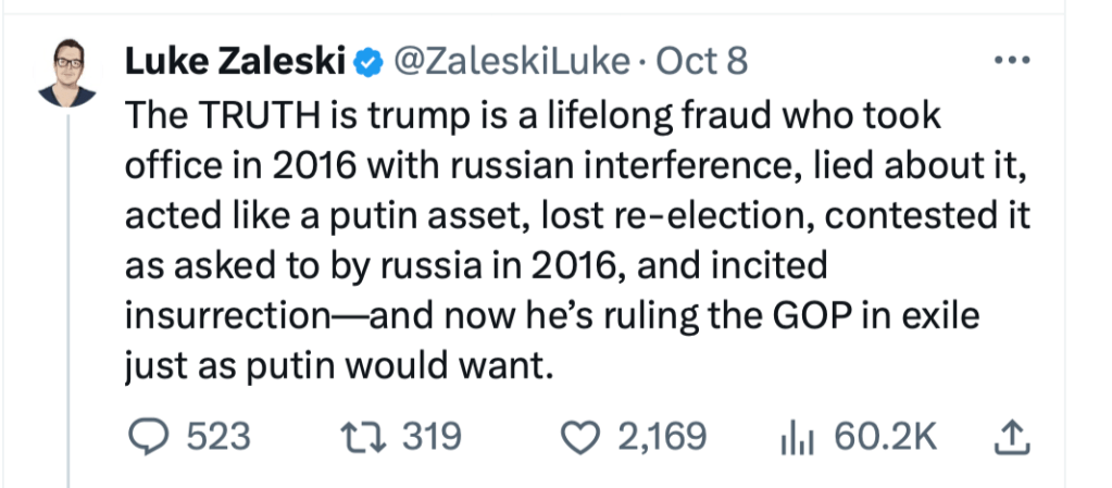 Afernoon Update: Here’s a Trump post on Truth Social from this afternoon posted while there’s nothing but horrific news coming from Israel: