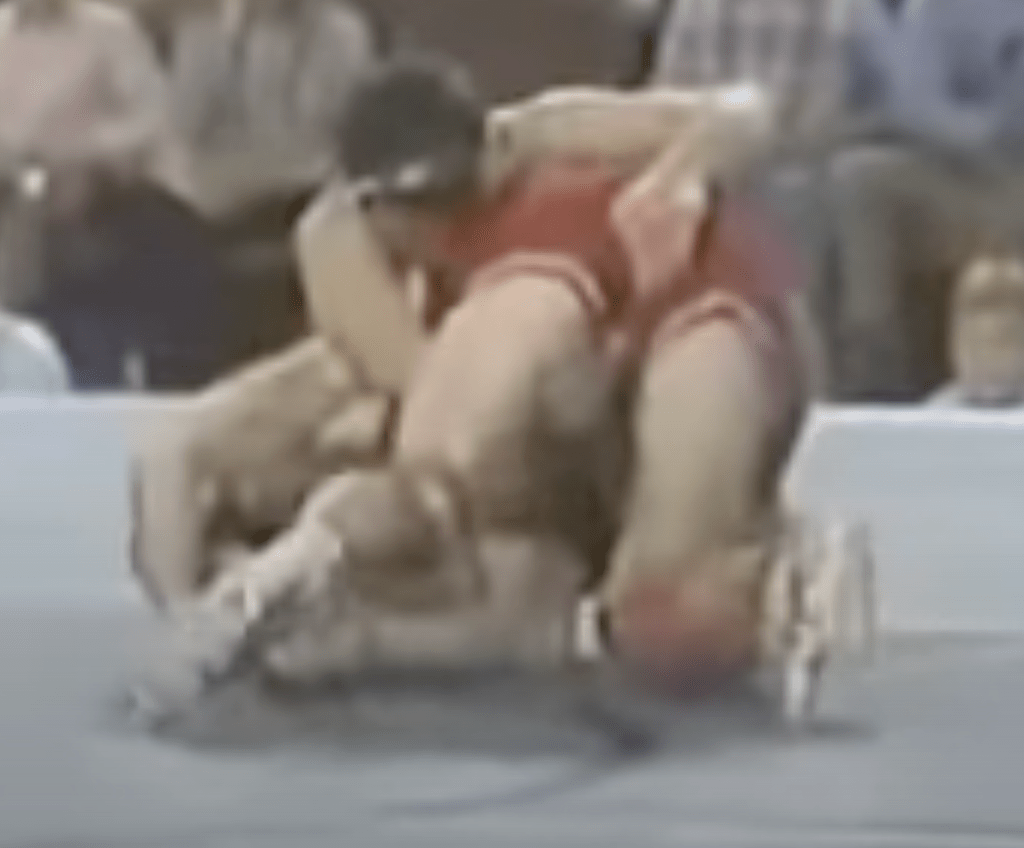 Back in his wrestling days I am sure Jordan preferred to be literally on top but as shown below even when it may appear he’s losing he was able to control the legs of his opponent John Smith (in on right in dark singlet) form Oklahoma State.