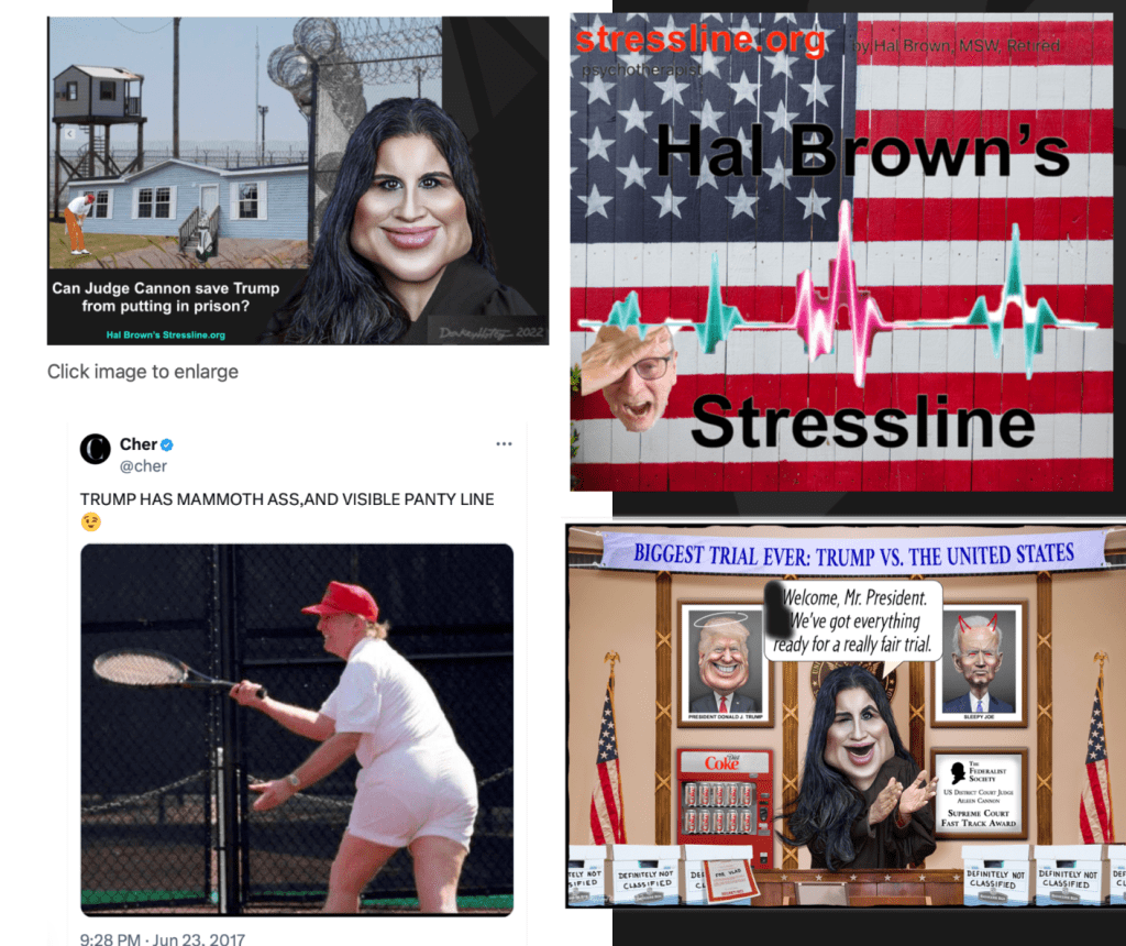My origial title waqs “Can Judge Cannon save Trump’s sorry ass from prison” and featured this photo as tweeted by Cher (and used frequently in the media much no doubt to Triump’s dismay):
