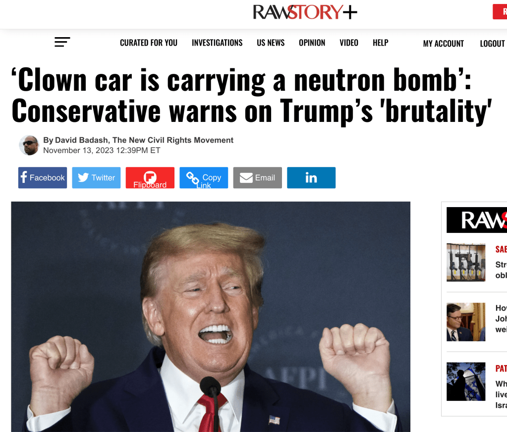 ‘Clown car is carrying a neutron bomb’: Conservative warns on Trump’s ‘brutality’
