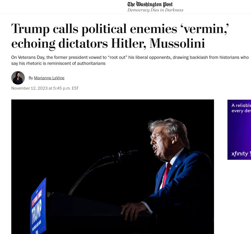 Washington Post: Trump calls political enemies ‘vermin,’ echoing dictators Hitler, Mussolini