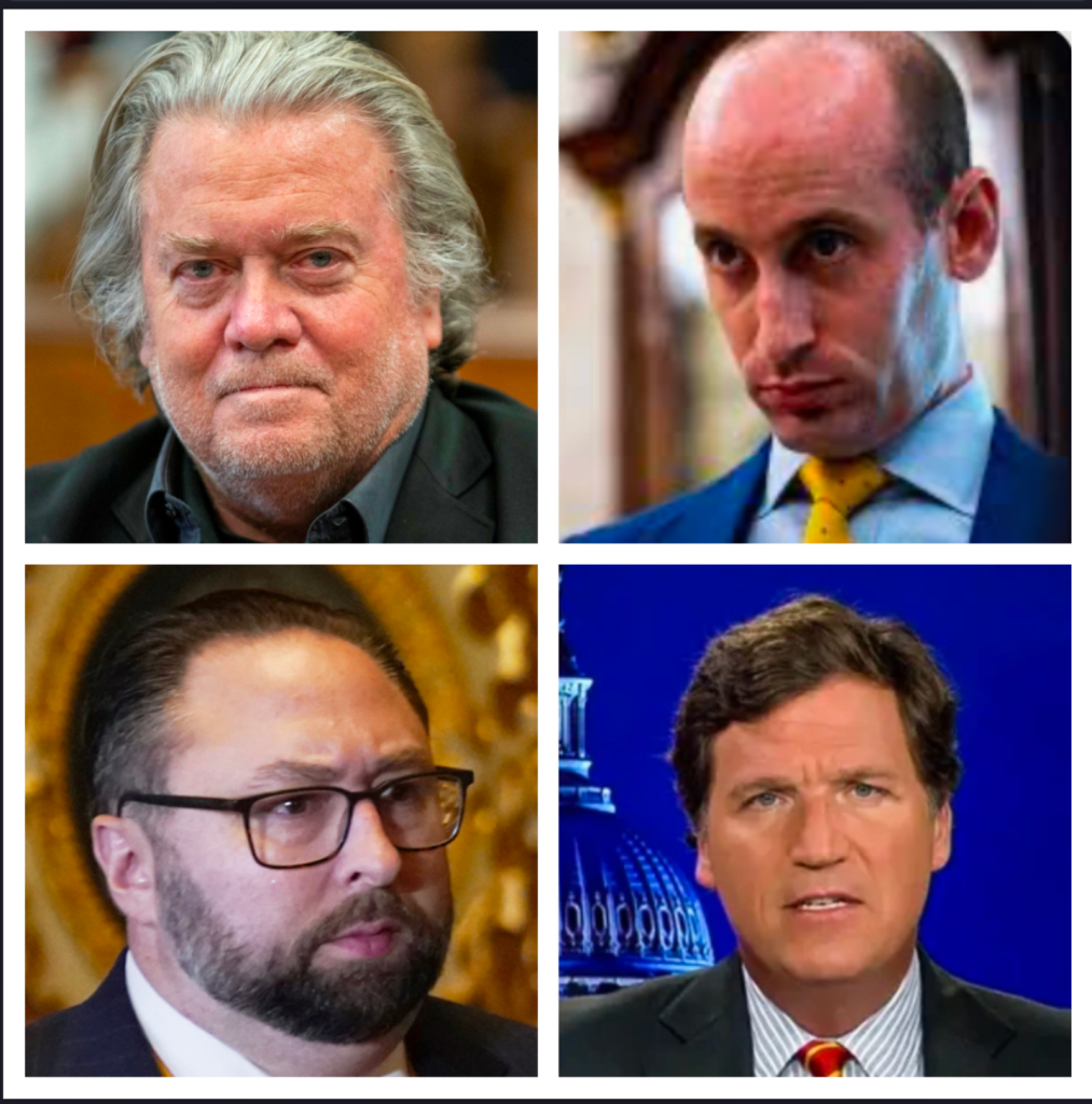 It isn’t that Trump and his Joseph Goebells, Martin Bormanns, Hermann Görings, and Heinrich Himmlers (Bannon, Stephen Miller, Jason Miller (upper right below, who MSNBC’s Paul Waldman charitably called ghoulish), and Tucker Carlson among others are giving him advice and encouraging him in his most malevolent fantasies that bothers me.