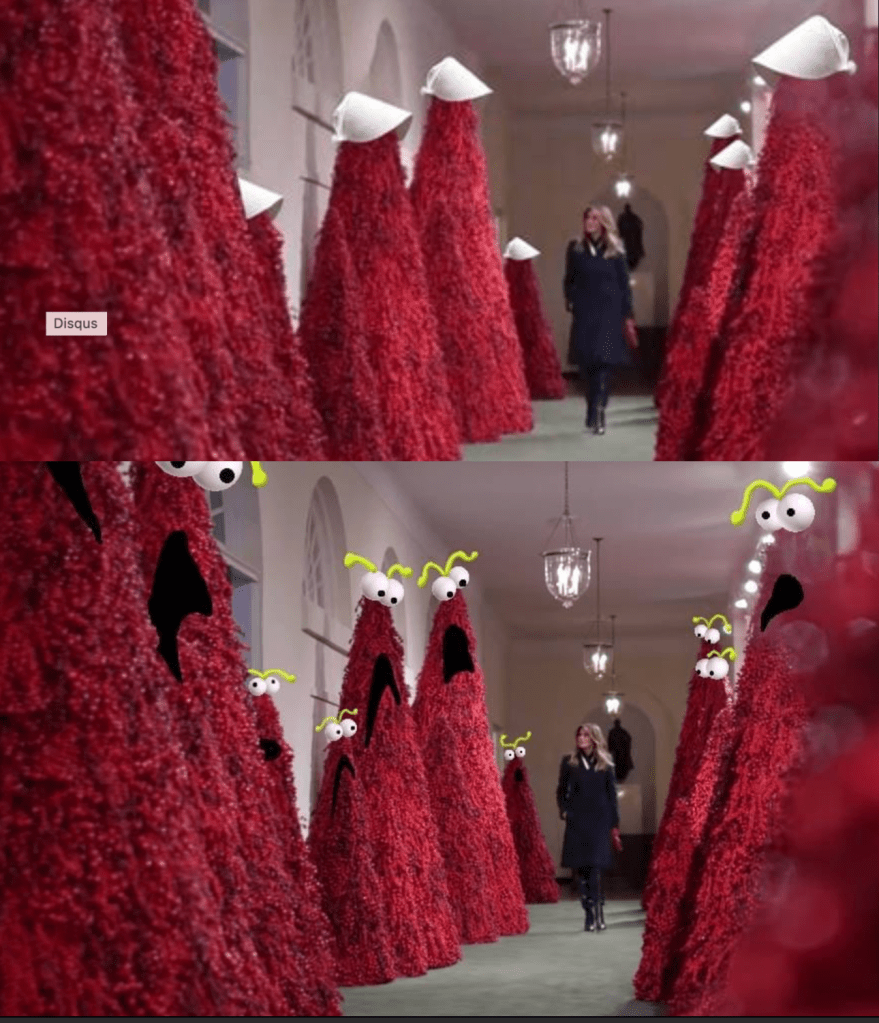 Several commenters posted images of Melania and the red Christmas trees. Here are two of them: