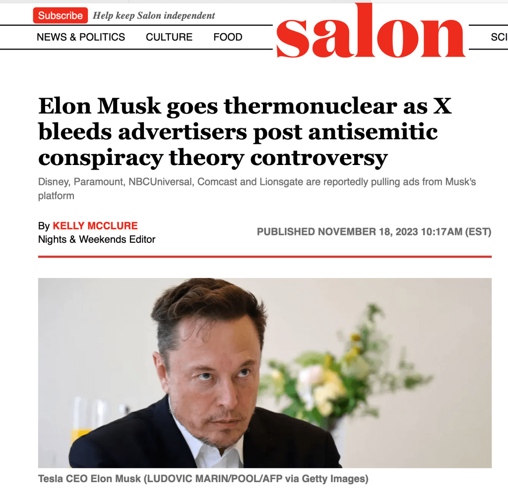 X has become his newsmaking playtoy and way to poke the woke world with what he sees as a sharp stick. He is in his own way as much of a sadist and narcissist as Donald Trump and like Trump controls a social media platform.