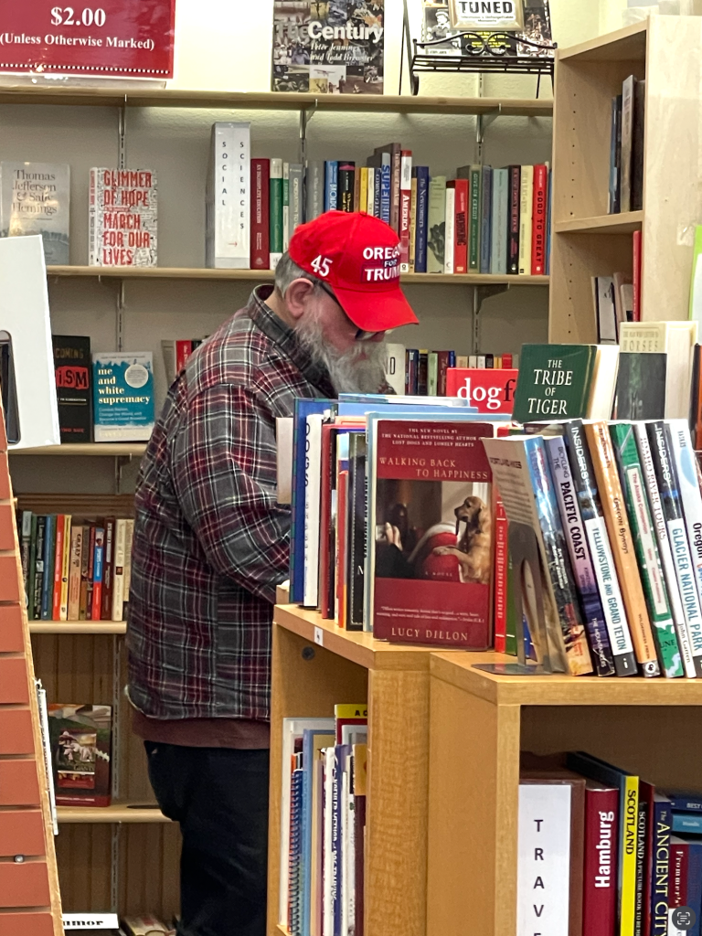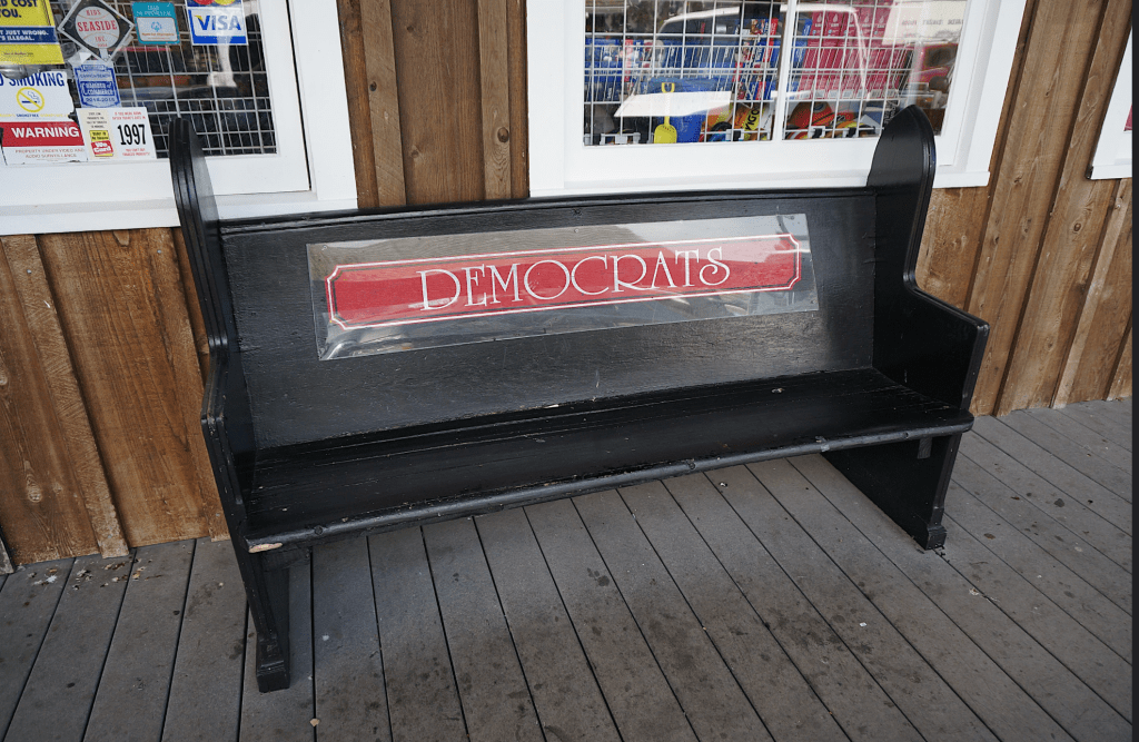 How times have changed? At the time we were at the store I didn’t think that I might write this blog. Now I wish I’d taken a few pictures, or even if I had the courage engaged the people sitting on the Republican bench in conversation.
