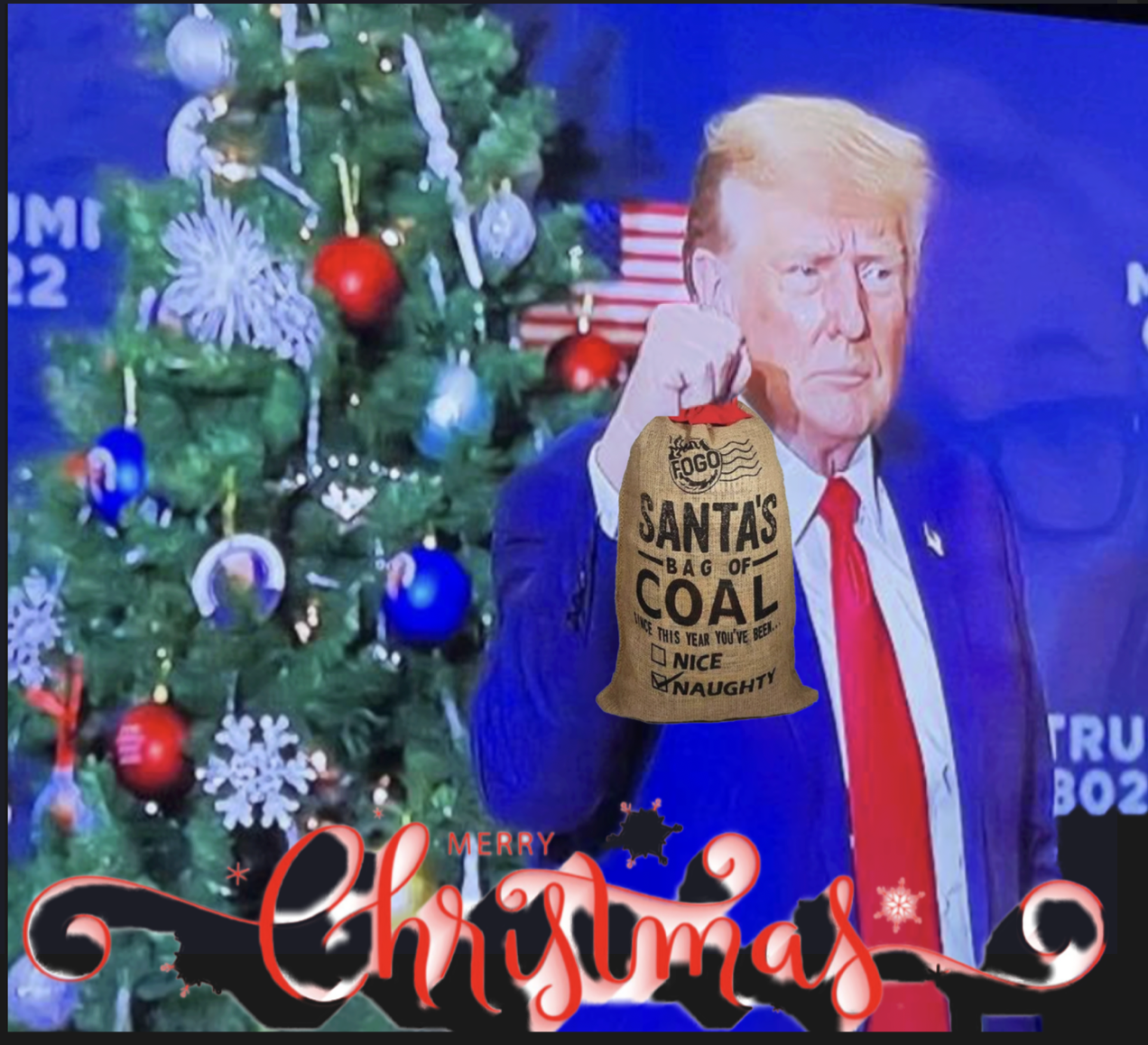 The day after I posted “A Trump Christmas card” which was about Trump’s holiday posts on Truth Social I went back and added the bag of coal. The orginal photo featured Trump standing in front of a Christmas tree looking angry with his fist clenched. Without the bag of coal it was a good illustration for his Christmas message.