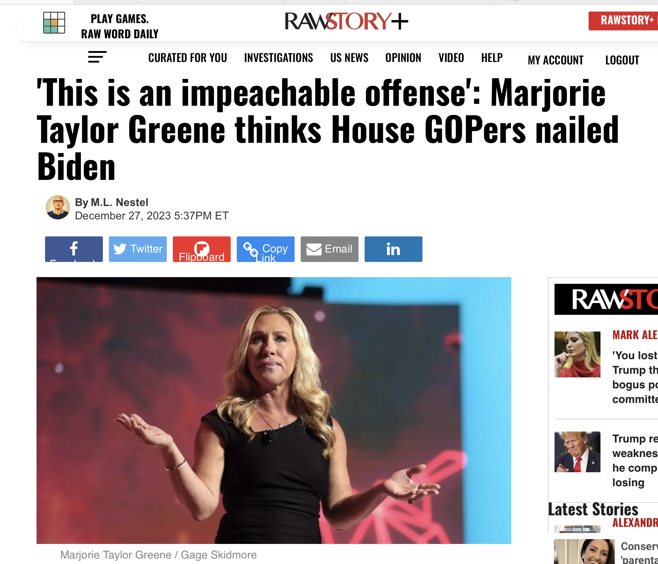 Sometimes I don’t even have to make an illustration. For example in this article I simpley used a ready-made illustration with a DonkeyHotey caricature.: Marjorie Taylor Greene calls for embalmers to testify to GOP on COVID conspiracy theory I wrote: “Dare anyone suggest that MTG (the G doesn’t stand for genius) do a simple Google search for Covid vaccines and blood clots? (here)”