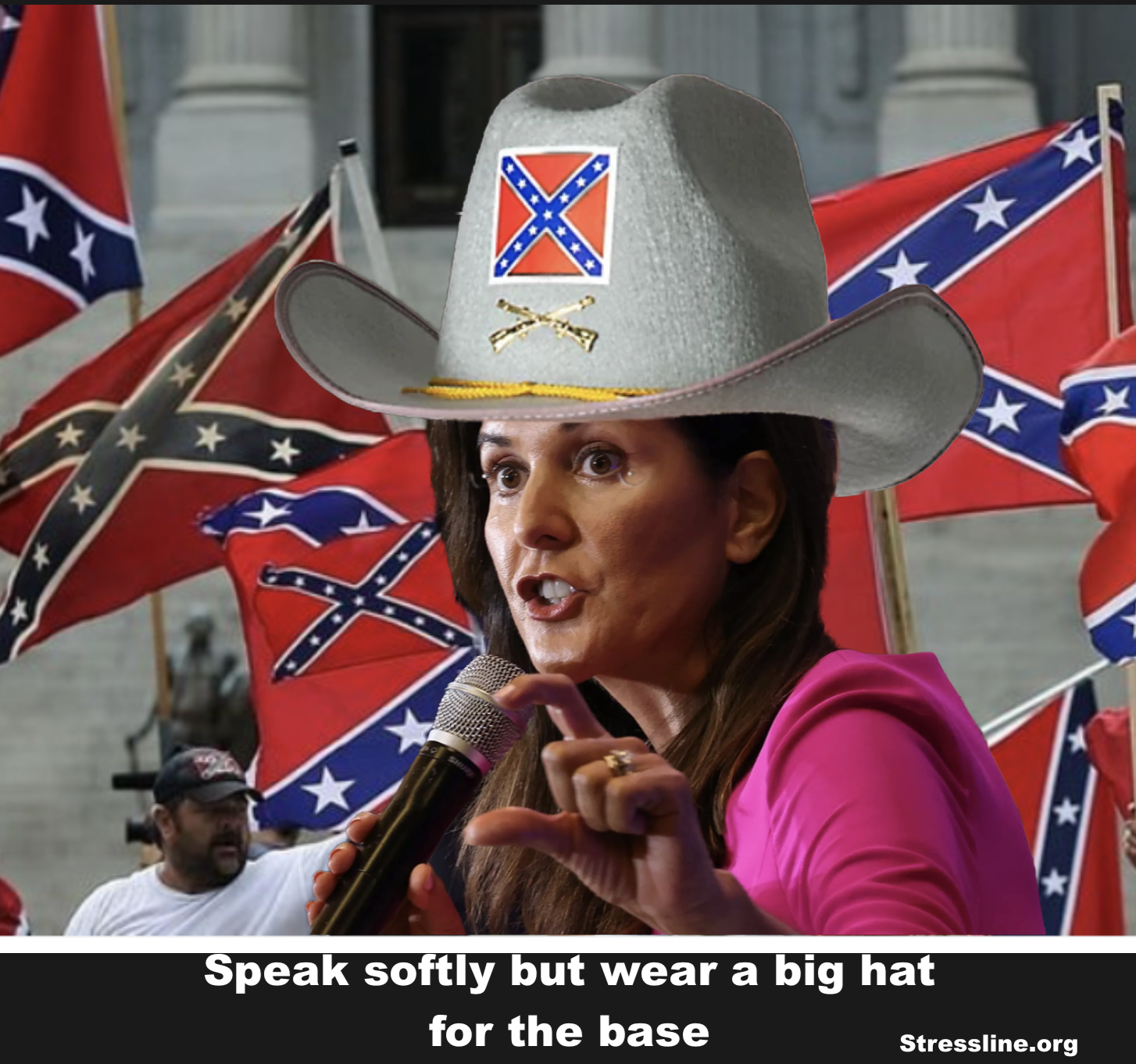 Above, Nikki Haley, goes with this article. Top is regular Confederate soldier hat, bottom is officer’s hat.