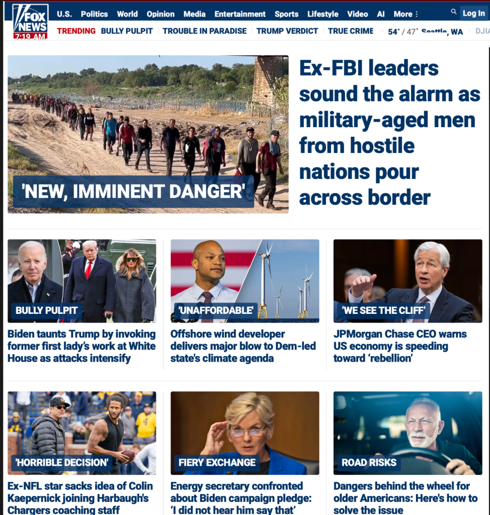 When MSNBC was reporting on the verdict in the E. Jean Carroll trial I tuned in to Fox News to see what they were covering. They had a host interviewing someone about the border situation expressing near hysteria about how they thought Biden wanted the country to be overrun with criminals.