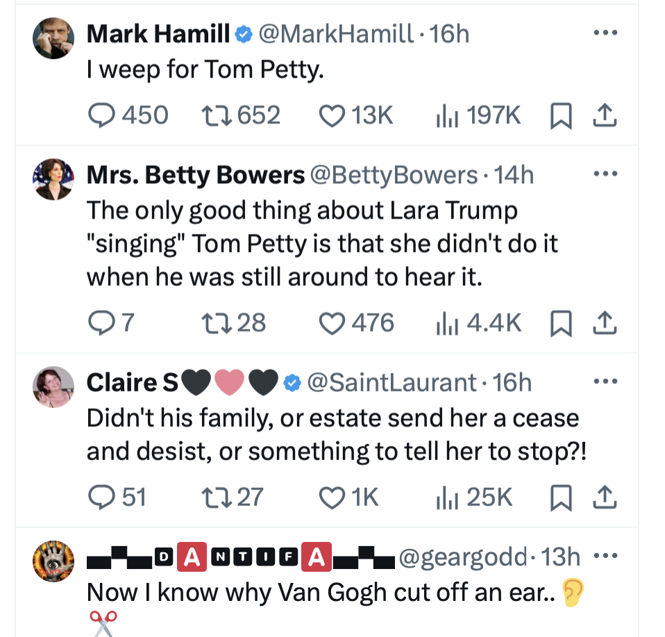 You can compare her version to Tom Petty’s here: https://www.youtube.com/watch?v=1G4ustq-kmQ