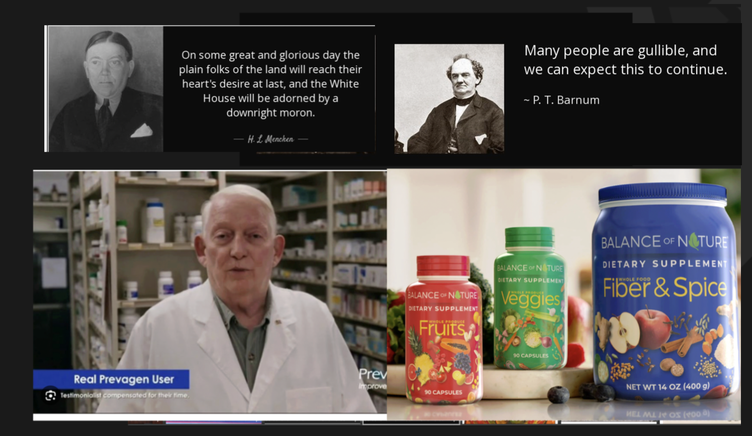 Two companies flood evening television with commericals selling what is basically nothing more than modern day snake oil or an overpriced way to get a vitamin supplement no better than store brand multivitamins.