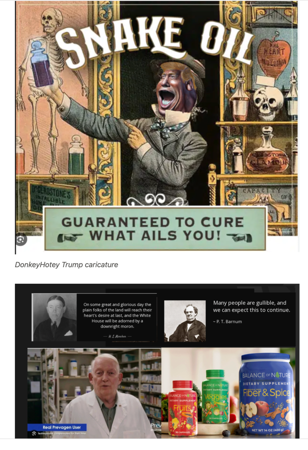 In fact, when the snake oil of old had cocaine, alcohol, amphethamine, opium, or even rattlesnake oil as ingredients, as some did, they probably actually did something healthwise aside from causing addiction.