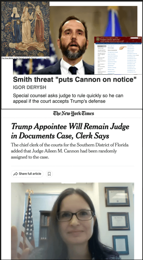 Jack Smith was handed what should have been a slam dunk court victory in the Mar-a-Lago documents case. By fate, or chance, intervened in form of Judge Eileen Cannon who was assigned to preside over the case. Consider the odds against this (above). I wonder whether Trump realized how lucky he was when she was appointed.