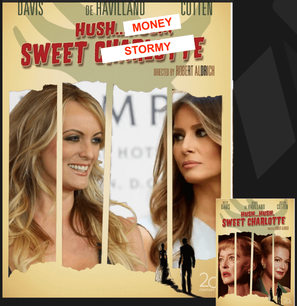 I’m calling ths the “Hush, hush, sweet Stormy Daniels money trial” from the 1964 hit movie “Hush, Hush, Sweet Charlotte” starring Bette Davis which also involved infidelity and happened to have a grotesque murder.