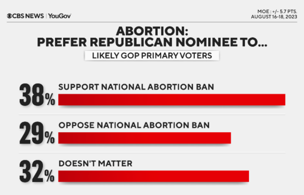 Approximately 30% of Republicans opposing a national abortion ban is enough to lose him the election. If even 10% of them feel strongly enough about freedom of choice to vote vote for Biden or just not vote at all, Trump will not be the next president.
