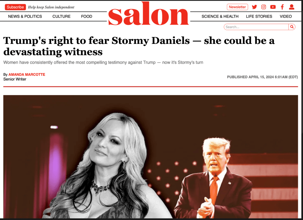 Daniels, whose legal name is Stephanie Clifford, is expected to testify in Trump’s Manhattan criminal trial, which is scheduled to begin this week. While she has always said that the sex was “consensual,” we can see why Trump was intent on silencing herafter the 2016 release of the infamous “Access Hollywood” tape in which he brags about sexually assaulting women. Her story wasn’t dangerous because it was evidence of adultery. It was yet more evidence of Trump’s long history of acting entitled to women’s bodies. Trump struggles with basic emotional regulation on the best of days, but even by his low standards, his abject terror over this trial is remarkable. He posts hysterically on Truth Social at all hours. His lawyers, always trying to manage the feelings of their volatile client, have filed a series of increasingly silly motions aimed at delaying the trial, all of which have been shot down. No doubt he’s afraid of being convicted, especially since the evidence is much stronger than skeptical media reporting initially led people to believe. Polls suggest that 64% of respondents — including four out of 10 Republicans — believe the charges to be serious.