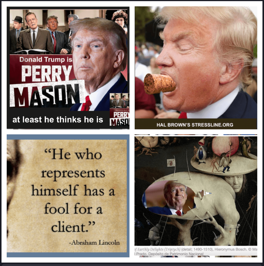 One might think that a sensible lawyer would admonish Trump not to go on rants about how evil the judge is and how he’s being persecuted everytime he faces cameras at the courthouse. Instead, he might consider simply saying that he’s innocent and is confident that sensible jurors will acquit him of all charges.