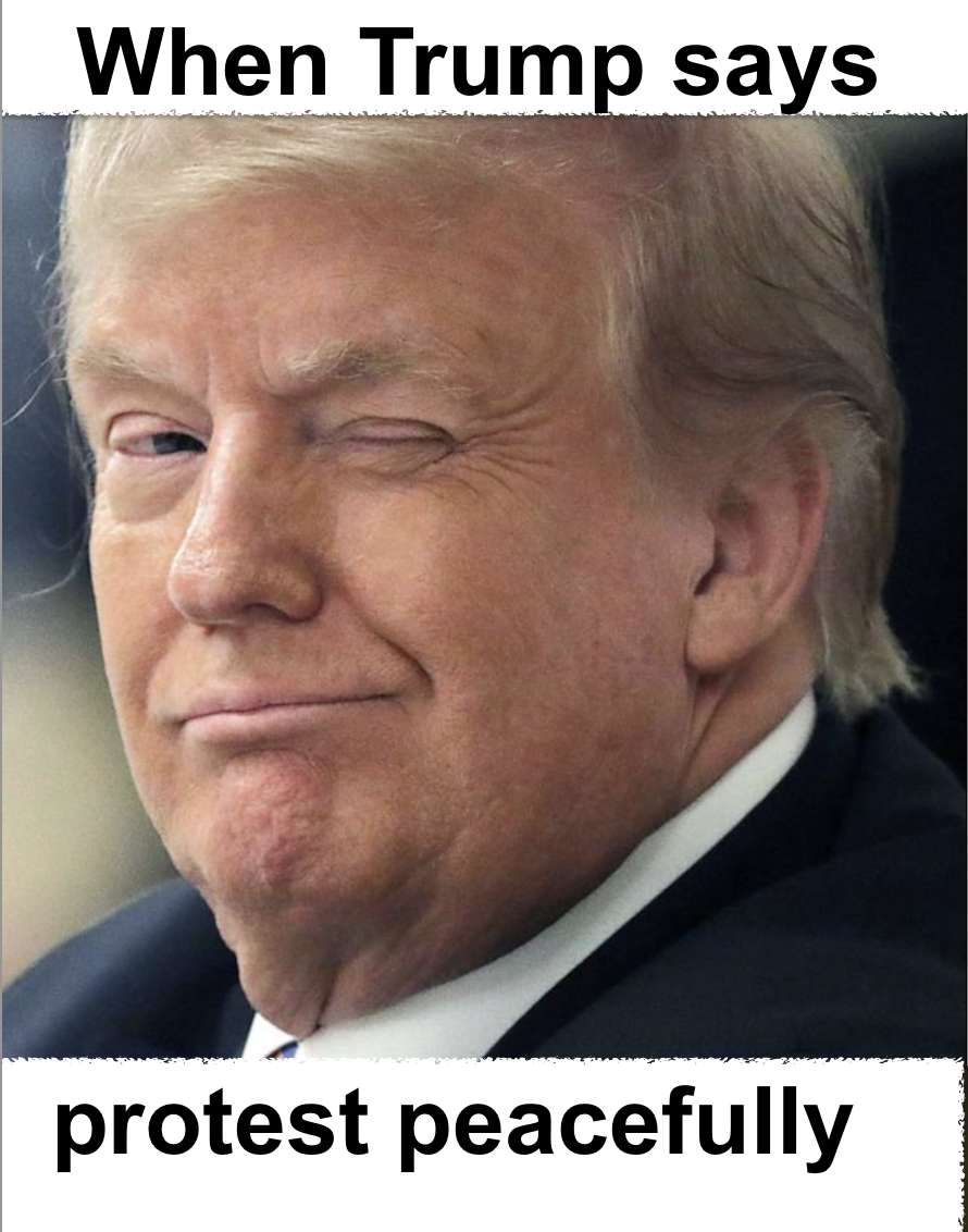 Even though throws in the words “peacefully protest” this does not negate the words that precede and follow it which will be understood by many of his intended audience to mean that anything goes.