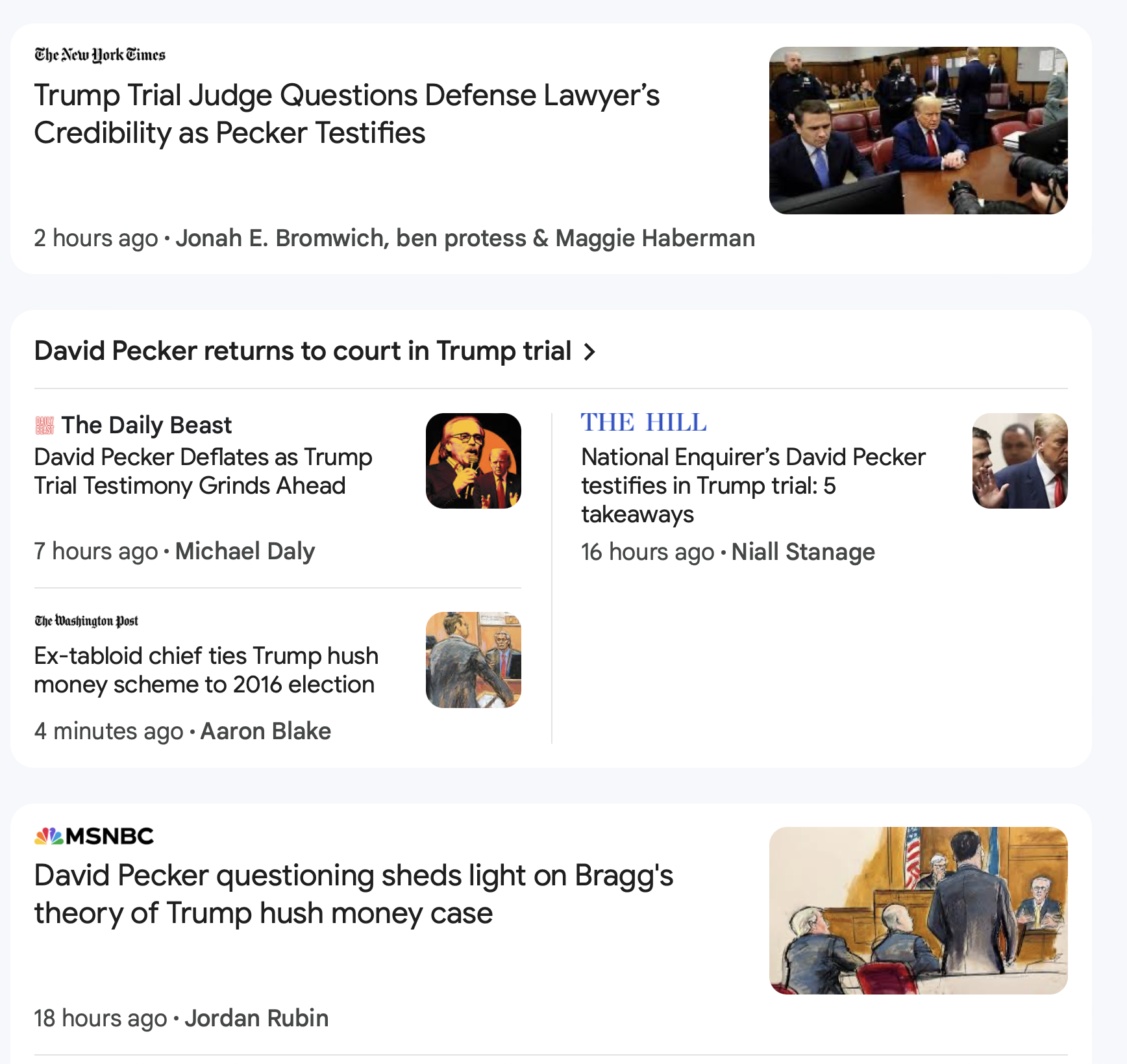 The current print edition (on the cover at least) has nothing about politics even though publisher Pecker and the Trump trial is in the news.