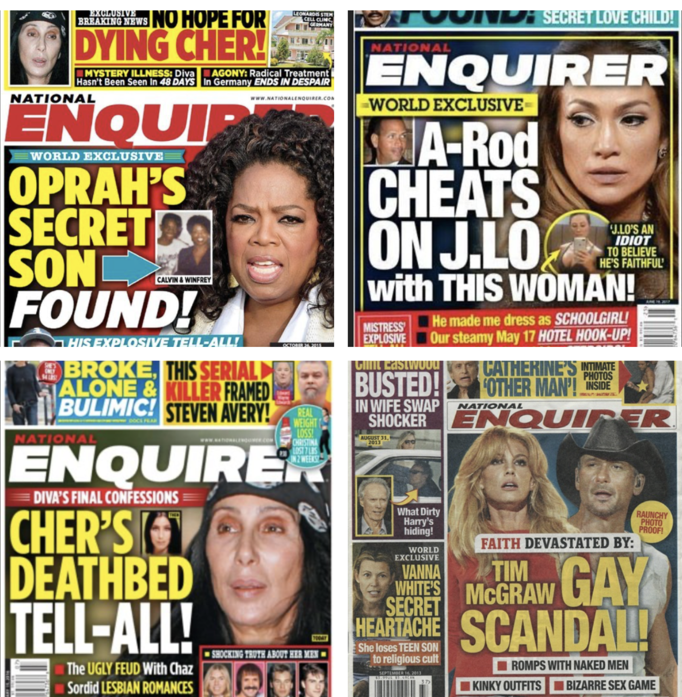 The National Enquire website (here) surprised me. There are no political article. The only remotely salacious article is this one from June, 2022.