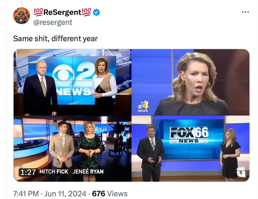 “Morning Joe” covered this today with clips of local Sinclair owned station anchors reading the exact same script about the Wall Street Journal article about President Biden’s age and saying that his so-called cognitive deficits could possibly decide the election. They said the same words and then they cut to the same national reporter spouting anti-Biden lies.