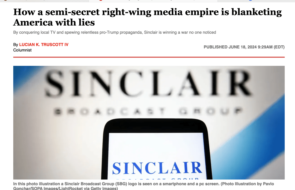 When people tune in to watch Fox News they know what to expect. When they tune in to a local Sinclair owned station they may not know that they will be watching segments that are as biased as those on Fox News.