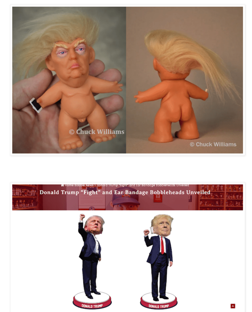 I noticed yesterday that a Trump with an injured ear bobblehead doll was being offered for sale. They didn’t show how the actual doll would look so two cheezy mockups were published.