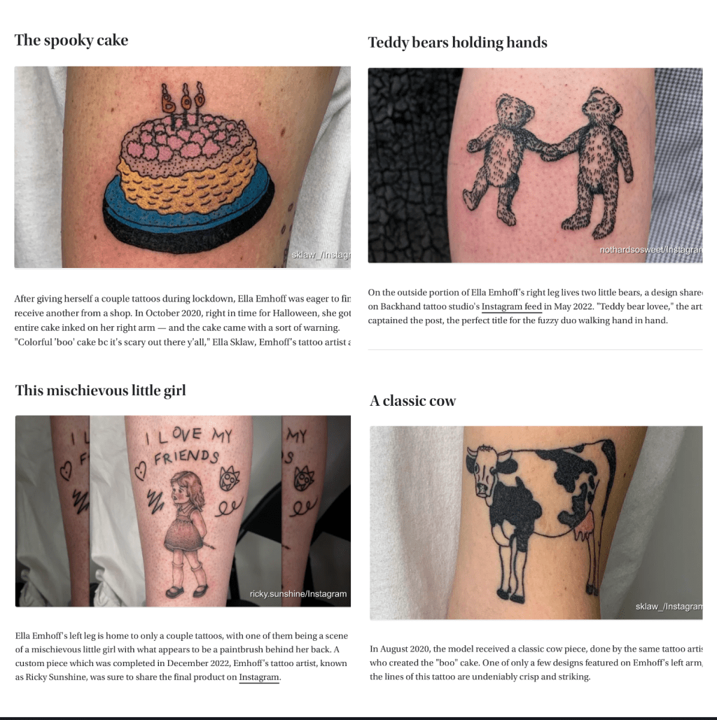 That’s right. It is about her tattoos. Here’s an article about them. It includes photos and descriptions.