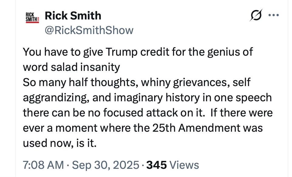 As I write this Trump is calling CNN fake news. He is going on and on in the same vein between talking about the military and bragging about himself and attacking Biden and “radical left lunatics.”